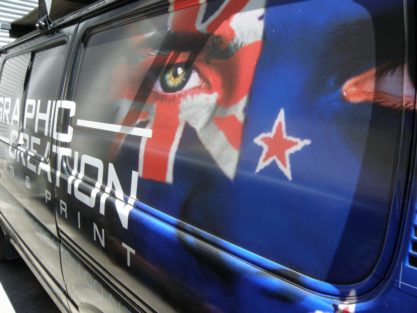 One-way vision is the perfect window graphic medium for point of purchase signage, outdoor advertising and vehicle window decals.